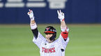 [OSEN=수원, 김성락 기자] 24일 오후 경기도 수원시 수원kt위즈파크에서 ‘2021 신한은행 SOL KBO 리그’ KT 위즈와 한화 이글스의 경기가 열렸다.4회초 1사 한화 페레즈가 안타를 날린 뒤 기뻐하고 있다. 2021.09.24 /ksl0919@osen.co.kr