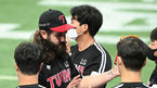 [OSEN=고척, 이대선 기자] 2일 오후 서울 고척스카이돔에서 ’2021 신한은행 SOL KBO 리그' 키움 히어로즈와 LG 트윈스의 경기가 열렸다.5회말 수비를 마친 LG 켈리가 더그아웃으로 가며 동료들과 하이파이브를 하고 있다. 2021.10.02 /