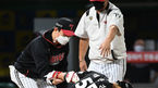 [OSEN=인천, 한용섭 기자]LG 채은성이 투구에 왼 무릎을 맞아 부상으로 교체됐다. 통증으로 걷지 못하고 업혀서 교체됐다.12일 인천 SSG랜더스필드에서 열린 LG-SSG 경기. 채은성은 4번 우익수로 선발 출장했다.채은성은 2회 선두타자