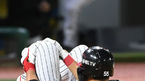 [OSEN=인천, 이대선 기자] 12일 오후 인천 SSG 랜더스필드에서 SSG 랜더스와 LG 트윈스의 경기가 열렸다.2회초 무사에서 SSG 최민준의 투구에 맞은 LG 채은성이 고통스러워하고 있다. 2021.10.12 /sunday@osen.co.kr