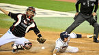[OSEN=잠실, 지형준 기자] 12일 오후 서울 잠실야구장에서 ‘2021 신한은행 SOL KBO리그’ 두산 베어스와 KT 위즈의 경기가 열렸다.7회말 무사 2루에서 두산 정수빈이 페르난데스의 1타점 적시타에 홈에서 KT 장성우와 앞서 세이