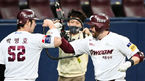 [OSEN=잠실,박준형 기자] 13일 오후 서울 잠실구장에서 2021 신한은행 SOL KBO리그 두산 베어스와 KT 위즈의 경가가 진행됐다.6회말 동점 2타점 적시타를 날렸던 두산 최용제가 허경민과 교체된뒤 동료들의 축하를 받고 있다 2021.10.13 /