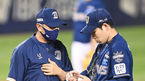 [OSEN=잠실,박준형 기자] 15일 오후 서울 잠실구장에서 2021 신한은행 SOL KBO리그 두산 베어스와 NC 다이노스의 경가가 진행됐다.7회말 두산 박건우에게 첫 안타를 허용한 이재학 선발투수가 손민한 투수 코치와 이야기를 나누고 있