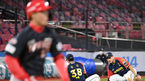 [OSEN=수원, 김성락 기자] 15일 오후 경기도 수원시 수원kt위즈파크에서 ‘2021 신한은행 SOL KBO 리그’ KT 위즈와 KIA 타이거즈의 경기가 열렸다.5회말 1사 1, 3루 KIA 고영창이 KT 오윤석에게 몸에 맞는 볼, 만루 위기를 맞고 있다.
