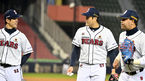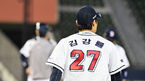 [OSEN=잠실, 지형준 기자] 23일 오후 서울 잠실야구장에서 ‘2021 신한은행 SOL KBO리그’ 두산 베어스와 LG 트윈스의 경기가 열렸다.8회초 2사 1,3루의 위기를 넘긴 두산 김강률이 김재호와 이야기를 나누며 더그아웃으로 향하
