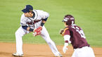 [OSEN=잠실,박준형 기자] 2일 오후 서울 잠실야구장에서 ‘2021 신한은행 SOL KBO리그’ 두산 베어스와 키움 히어로즈의 와일드카드 결정 2차전이 진행됐다.1회초 1사 1루 키움 김혜성의 병살타때 강승호 2루수가 타구를 잡은뒤