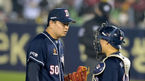 [OSEN=잠실, 조은정 기자] 4일 오후 서울 잠실야구장에서 '2021 신한은행 SOL KBO 리그' 포스트시즌 LG 트윈스와 두산 베어스의 준플레이오프(준PO) 1차전이 진행됐다.6회말 2사 1루 두산 이영하가 LG 문성주에게 안타를 허용하자 포수