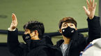 [OSEN=잠실, 민경훈 기자] 4일 오후 서울 잠실야구장에서 ‘2021 신한은행 SOL KBO리그’ 준플레이오프 LG 트윈스와 두산 베어스의 경기가 열렸다.부상으로 경기에 빠진 LG 오지환과 이상호가 응원석에서 인사를 하고 있다. 2021.1
