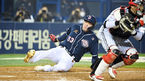 [OSEN=잠실,박준형 기자] 4일 오후 서울 잠실구장에서 2021 신한은행 SOL KBO리그 포스트시즌 LG 트윈스와 두산 베어스의 준플레이오프(준PO) 1차전이 진행됐다.9회초 2사 2루 두산 허경민의 1타점 적시타때 2루 주자 양석환이 홈 슬라이