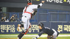 [OSEN=잠실, 민경훈 기자] 4일 오후 서울 잠실야구장에서 ‘2021 신한은행 SOL KBO리그’ 준플레이오프 1차전 LG 트윈스와 두산 베어스의 경기가 열렸다.8회초 1사 3루 두산 허경민이 김인태의 내야땅볼때 홈으로 쇄도하며 득점