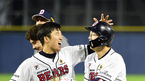 [OSEN=잠실, 민경훈 기자] 5일 오후 서울 잠실야구장에서 '2021 신한은행 SOL KBO 리그' 포스트시즌 두산베어스와 LG 트윈스의 준플레이오프(준PO) 2차전이 진행됐다.경기에 앞서 LG 채은성과 두산 양석환이 이야기를 나누고 있다. 2021.11