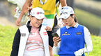 [OSEN=제주, 지형준 기자] 5일 엘리시안 제주 컨트리클럽(파72 / 6,653야드)에서 '제15회 S-OIL 챔피언십'(총상금 7억 원, 우승상금 1억 2,600만 원) 1라운드 경기가 열렸다.장하나, 박현경이 1번홀로 이동하며 이야기를 나누고 있다.2021.11.0