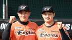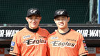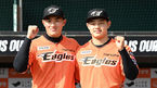 [OSEN=대전, 최규한 기자] 한화 이글스가 5일 대전 한화생명이글스파크에서2021시즌 마무리캠프를 꾸리고 훈련에 나섰다.한화 2022 신인 문동주(오른쪽)과 박준영이 인터뷰를 앞두고 유니폼을 입고 포즈를 취하고 있다. 2021.11.05 / dre