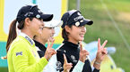[OSEN=제주, 지형준 기자] 5일 엘리시안 제주 컨트리클럽(파72 / 6,653야드)에서 '제15회 S-OIL 챔피언십'(총상금 7억 원, 우승상금 1억 2,600만 원) 1라운드 경기가 열렸다.김지현, 홍란, 박지영이 티샷을 날리고 포즈를 취하고 있다.2021.11.