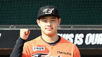 [OSEN=대전, 최규한 기자] 한화 이글스가 5일 대전 한화생명이글스파크에서 2021시즌 마무리캠프를 꾸리고 훈련에 나섰다.한화 2022 신인 박준영이 인터뷰를 앞두고 유니폼을 입고 포즈를 취하고 있다. 2021.11.05 / dreamer@osen.co.kr
