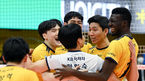 [OSEN=의정부, 조은정 기자] KB손해보험이 6일 오후 경기도 의정부체육관에서 열린 ‘2021-2022 도드람 V-리그’ 남자부 우리카드와의 경기에서 세트스코어 3-0(27-25 25-88 26-24)으로 이겼다.3세트 KB손해보험 선수들이 득점에 환호