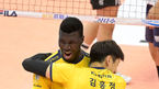 [OSEN=의정부, 조은정 기자] 6일 오후 경기도 의정부체육관에서 ‘2021-2022 도드람 V-리그’ 남자부 KB손해보험과 우리카드의 경기가 열렸다.2세트 득점에 성공한 KB손해보험 케이타가 김홍정과 기뻐하고 있다. 2021.11.06 /cej@osen.