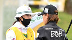 [OSEN=제주, 지형준 기자] 6일 엘리시안 제주 컨트리클럽에서 한국여자프로골프(KLPGA) 투어 '제15회 S-OIL 챔피언십' 2라운드 경기가 열렸다.1번홀 박주영이 티샷에 앞서 캐디로 나선 언니 박희영과 이야기를 나누고 있다.2021.11.06 /jpn