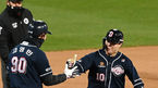 [OSEN=대구, 민경훈 기자] 9일 오후 대구 삼성라이온즈파크에서 '2021 신한은행 SOL KBO 리그' 포스트시즌 플레이오프(PO) 1차전 삼성 라이온즈와 두산 베어스의 경기가 진행됐다.9회초 2사 두산 박세혁이 우월 솔로 홈런을 날린 후 그
