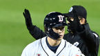 [OSEN=잠실, 민경훈 기자] 10일 오후 잠실 야구장에서 '2021 신한은행 SOL KBO 리그' 포스트시즌 플레이오프(PO) 2차전 두산 베어스와 삼성 라이온즈의 경기가 진행됐다.2회초 1사 두산 선발 선발 김민규가 삼성 강민호에게 몸에 맞는 볼