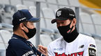[OSEN=고척, 지형준 기자] 13일 서울 고척스카이돔에서 ‘2021 신한은행 SOL KBO리그’ 포스트시즌 한국시리즈를 하루 앞두고 KT 위즈와 두산 베어스가 공식 훈련을 가졌다.두산 이영하, 홍건희가 훈련에 앞서 이야기를 나누고