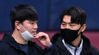 [OSEN=고척, 지형준 기자] 13일 서울 고척스카이돔에서 ‘2021 신한은행 SOL KBO리그’ 포스트시즌 한국시리즈를 하루 앞두고 KT 위즈와 두산 베어스가 공식 훈련을 가졌다.두산 김민규, 최원준이 훈련에 앞서 이야기를 나누며