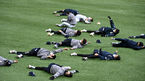 [OSEN=고척, 지형준 기자] 13일 서울 고척스카이돔에서 ‘2021 신한은행 SOL KBO리그’ 포스트시즌 한국시리즈를 하루 앞두고 KT 위즈와 두산 베어스가 공식 훈련을 가졌다.두산 선수들이 훈련에 앞서 스트레칭을 하고 있다.2021