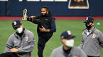 [OSEN=고척, 지형준 기자] 13일 서울 고척스카이돔에서 ‘2021 신한은행 SOL KBO리그’ 포스트시즌 한국시리즈를 하루 앞두고 KT 위즈와 두산 베어스가 공식 훈련을 가졌다.두산 미란다가 훈련을 위해 그라운드에 들어서고 있