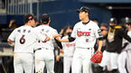 [OSEN=고척, 조은정 기자] 15일 오후 서울 고척스카이돔에서 KT 위즈와 두산 베어스의 2021시즌 KBO리그 한국시리즈 2차전이 열렸다.3회초 1사 1루 KT 선발 소형준이 이닝을 마친 뒤 두산 강승호 병살타 때 호수비를 펼친 박경수와 기