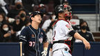 [OSEN=고척, 이대선 기자] 15일 오후 서울 고척스카이돔에서 KT 위즈와 두산 베어스의 2021시즌 KBO리그 한국시리즈 2차전이 열렸다.4회초 2사 2루에서 KT 소형준이 두산 박세혁을 땅볼로 처리하고 있다. 2021.11.15 /sunday@osen.co.kr