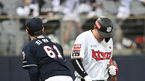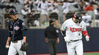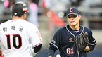 [OSEN=고척, 이대선 기자] 15일 오후 서울 고척스카이돔에서 KT 위즈와 두산 베어스의 2021시즌 KBO리그 한국시리즈 2차전이 열렸다.3회말 1사에서 KT 황재균이 외야플라이로 물러나며 두산 최원준을 격려하며 더그아웃으로 가고 있