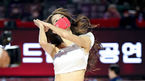 [OSEN=청라, 민경훈 기자] 15일 오후 인천 하나글로벌캠퍼스 청라체육관에서 '삼성생명 2021-22 여자프로농구' 하나원큐와 신한은행의 경기가 열렸다.하나원큐 치어리더들이 코트 위에서 공연을 펼치고 있다. 2021.11.15 / rumi@osen.co.kr