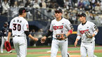 [OSEN=고척, 지형준 기자] 15일 오후 서울 고척스카이돔에서 KT 위즈와 두산 베어스의 2021시즌 KBO리그 한국시리즈 2차전이 열렸다.1회말 수비를 마친 두산 최원준이 땀을 닦고 있다. 2021.11.15 /jpnews@osen.co.kr