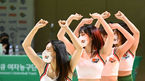 [OSEN=청라, 민경훈 기자] 15일 오후 인천 하나글로벌캠퍼스 청라체육관에서 '삼성생명 2021-22 여자프로농구' 하나원큐와 신한은행의 경기가 열렸다.하나원큐 치어리더들이 코트 위에서 공연을 펼치고 있다. 2021.11.15 / rumi@osen.co.kr