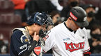 [OSEN=고척, 이대선 기자] 15일 오후 서울 고척스카이돔에서 KT 위즈와 두산 베어스의 2021시즌 KBO리그 한국시리즈 2차전이 열렸다.1회말 2사 1,2루에서 KT 장성우의 파울볼에 맞은 두산 박세혁을 격려하고 있다. 2021.11.15 /sunday@osen.co.kr
