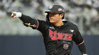 [OSEN=고척,박준형 기자] 17일 오후 서울 고척스카이돔에서 두산 베어스와 KT 위즈의 2021시즌 KBO리그 한국시리즈 3차전이 열렸다.7회초 1사 1,3루 KT 조용호가 1타점 적시타를 날린뒤 손짓하고 있다. 2021.11.17/ soul1014@osen.co.kr