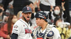 [OSEN=고척,박준형 기자] 17일 오후 서울 고척스카이돔에서 두산 베어스와 KT 위즈의 2021시즌 KBO리그 한국시리즈 3차전이 열렸다.2회초 2사 2루 KT 배정대의 안타때 2루 주자 유한준을 보살시킨 미란다와 박세혁이 기뻐하고 있다. 2021
