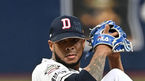 [OSEN=고척, 지형준 기자] 17일 오후 서울 고척스카이돔에서 KT 위즈와 두산 베어스의 2021시즌 KBO리그 한국시리즈 3차전이 열렸다.1회초 1사 1루에서 두산 미란다가 KT 강백호를 2루땅볼 병살 처리하며 기뻐하고 있다. 2021.11.17 /jpnews@