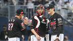 [OSEN=고척,박준형 기자] 18일 오후 서울 고척스카이돔에서 두산 베어스와 KT 위즈의 2021시즌 KBO리그 한국시리즈 4차전이 열렸다.6회말 무사 2,3루 KT 선발투수 배제성이 교체되며 아쉬워하고 있다 2021.11.18/ soul1014@osen.co.kr