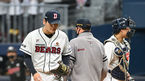 [OSEN=고척,박준형 기자] 18일 오후 서울 고척스카이돔에서 두산 베어스와 KT 위즈의 2021시즌 KBO리그 한국시리즈 4차전이 열렸다.1회초 2사 1,3루 두산 선발투수 곽빈이 강판되고 있다. 2021.11.18/ soul1014@osen.co.kr