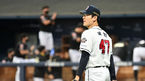 [OSEN=고척,박준형 기자] 18일 오후 서울 고척스카이돔에서 두산 베어스와 KT 위즈의 2021시즌 KBO리그 한국시리즈 4차전이 열렸다.1회초 1사 3루 KT 유한준에게 볼넷 허용한 두산 선발투수 곽빈이 아쉬워하고 있다. 2021.11.18/ soul1014@osen