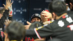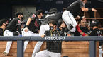 [OSEN=고척,박준형 기자] 18일 오후 서울 고척스카이돔에서 두산 베어스와 KT 위즈의 2021시즌 KBO리그 한국시리즈 4차전이 열렸다.1회초 2사 1,3루 KT 장성우의 1타점 적시타때 3루 주자 황재균이 홈을 밟은뒤 동료들의 축하를 받고있