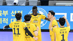 [OSEN=인천, 이대선 기자] 24일 오후 인천 계양체육관에서 2021-2022 도드람 V-리그 정규리그 프로배구 대한항공과 KB손해보험의 경기가 열렸다.3세트 득점에 성공한 KB손해보험 케이타가 동료들과 환호하고 있다. 2021.11.24 /sunday@osen.co.