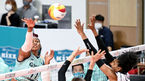 [OSEN=인천, 이대선 기자] 24일 오후 인천 계양체육관에서 2021-2022 도드람 V-리그 정규리그 프로배구 대한항공과 KB손해보험의 경기가 열렸다.3세트 대한항공 링컨의 공격이 KB손해보험 케이타의 블로킹에 걸리고 있다. 2021.11.24 /sund