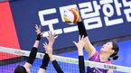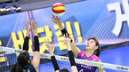 [OSEN=수원, 이대선 기자] 26일 오후 수원체육관에서 2021-2022 도드람 V-리그 여자부 정규리그 프로배구 현대건설과 흥국생명의 경기가 열렸다.1세트 흥국생명 캣벨이 현대건설의 블로킹 벽을 피해 공격을 시도하고 있다. 2021.11.26 /s
