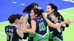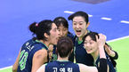 [OSEN=수원, 이대선 기자] 26일 오후 수원체육관에서 2021-2022 도드람 V-리그 여자부 정규리그 프로배구 현대건설과 흥국생명의 경기가 열렸다.1세트 현대건설 선수들이 득점에 환호하고 있다. 2021.11.26 /sunday@osen.co.kr