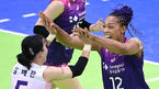[OSEN=수원, 이대선 기자] 26일 오후 수원체육관에서 2021-2022 도드람 V-리그 여자부 정규리그 프로배구 현대건설과 흥국생명의 경기가 열렸다.1세트 득점에 성공한 흥국생명 캣벨이 김해란과 환호하고 있다. 2021.11.26 /sunday@osen.co.kr