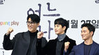 [OSEN=지형준 기자] 26일 오후 서울 여의도 콘래드 호텔에서 쿠팡플레이 시리즈 '어느 날' 제작발표회가 열렸다.배우 차승원, 김수현, 김성규가 포토타임을 하고 있다. 2021.11.26 /jpnews@osen.co.kr