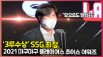 [OSEN=최재현 기자] 1일 오후 서울 강서구 메이필드호텔에서 ‘2021 마구마구 플레이어스 초이스 어워즈’가 열렸다.리얼글러브 3루수상을 수상한 SSG 최정이 수상 소감을 말하고 있다 2021.12.01 / hyun309@osen.co.kr[사진] 이대선