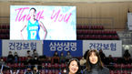 [OSEN=용인, 조은정 기자] 3일 오후 경기도 용인시 마평동 용인시실내체육관에서 '삼성생명 2021-22 여자프로농구'삼성생명 블루밍스와 BNK 썸의 경기가 열렸다.하프타임 때 지난 시즌 삼성생명에서 활약한 WKBL경기운영부장 김보미